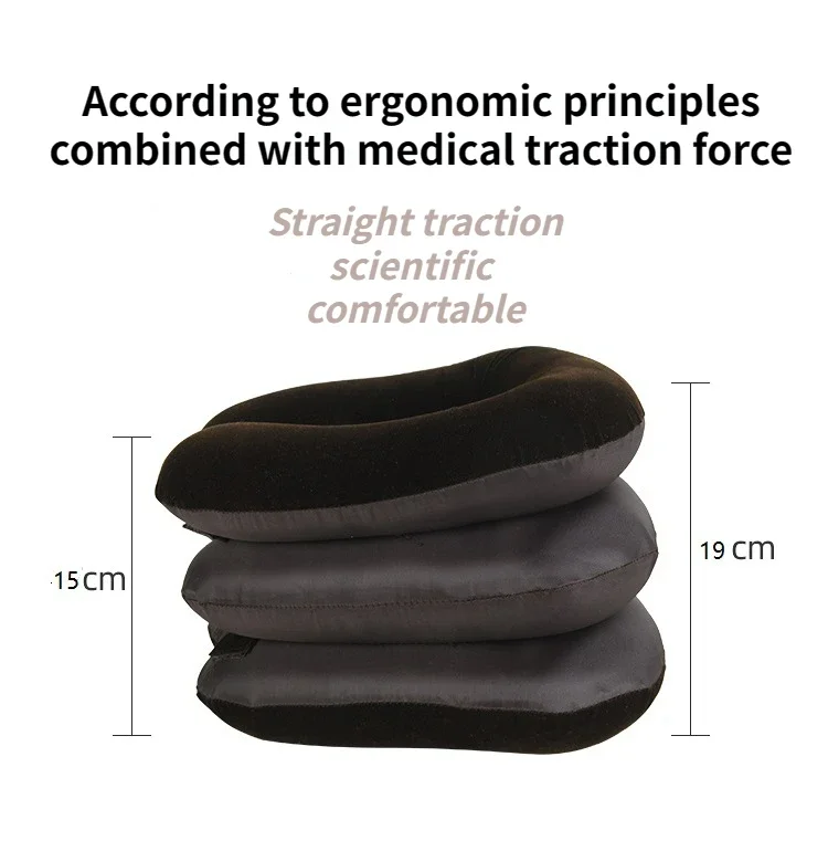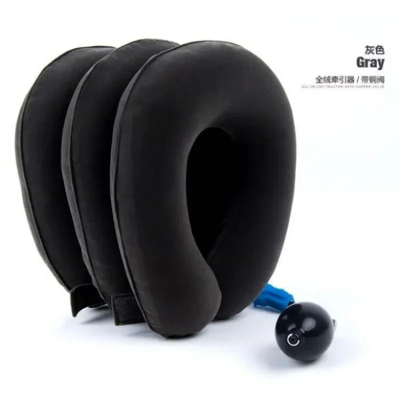* This traction device supports the neck, while elevating the jawbone. This creates optimal spine alignment, which relieves tension in your nerves. Many people experience back, spine and shoulder pain relief and spasm relief.